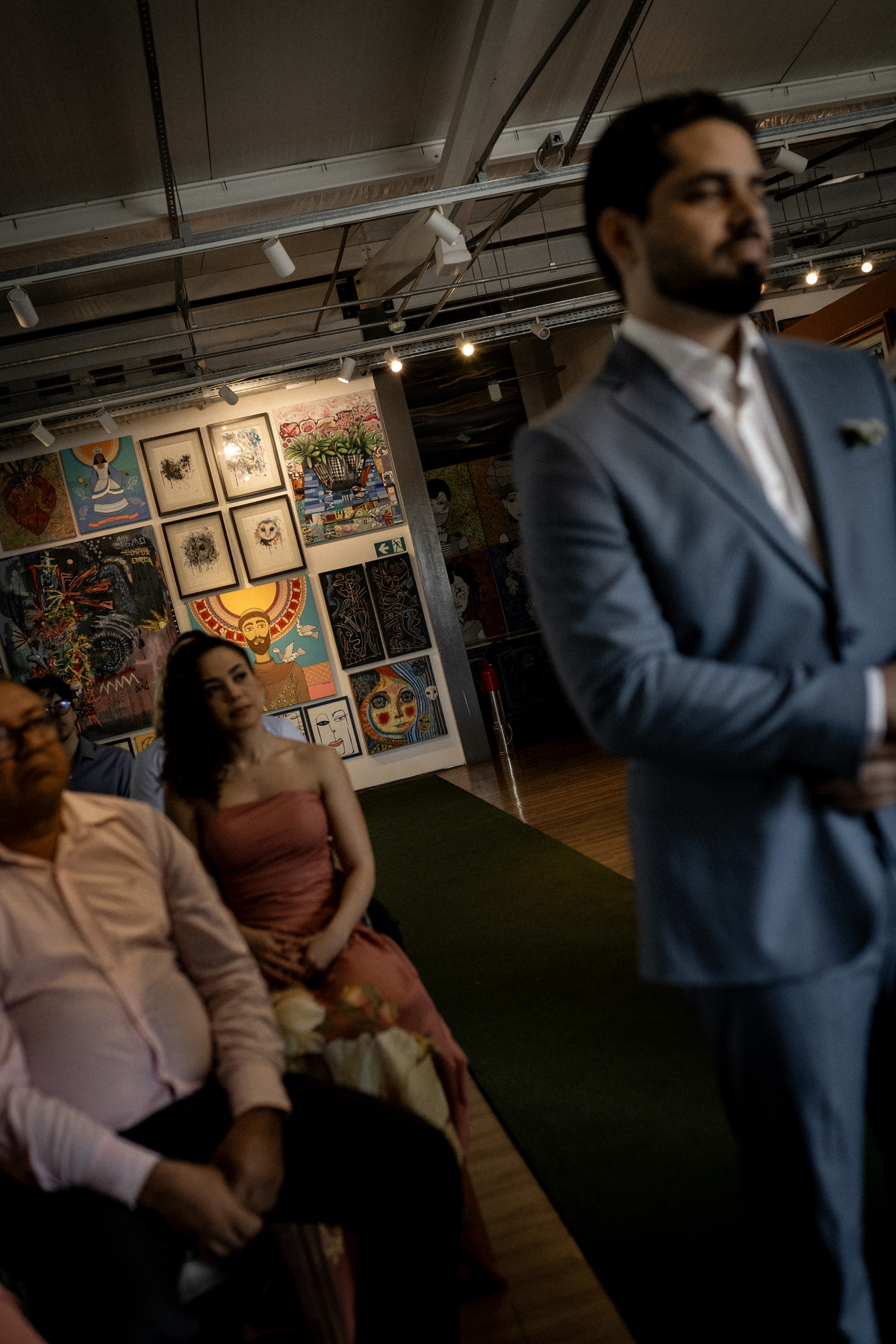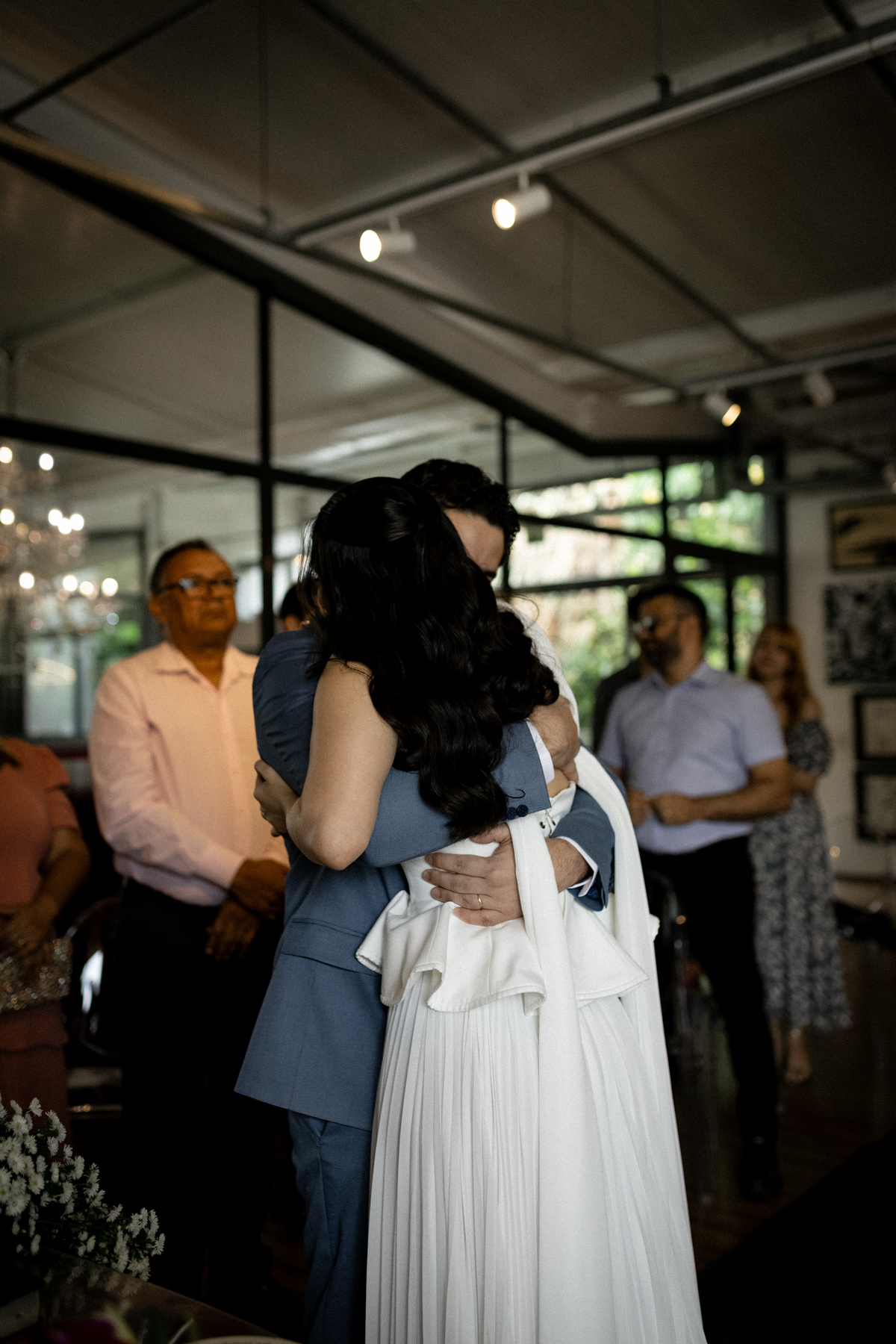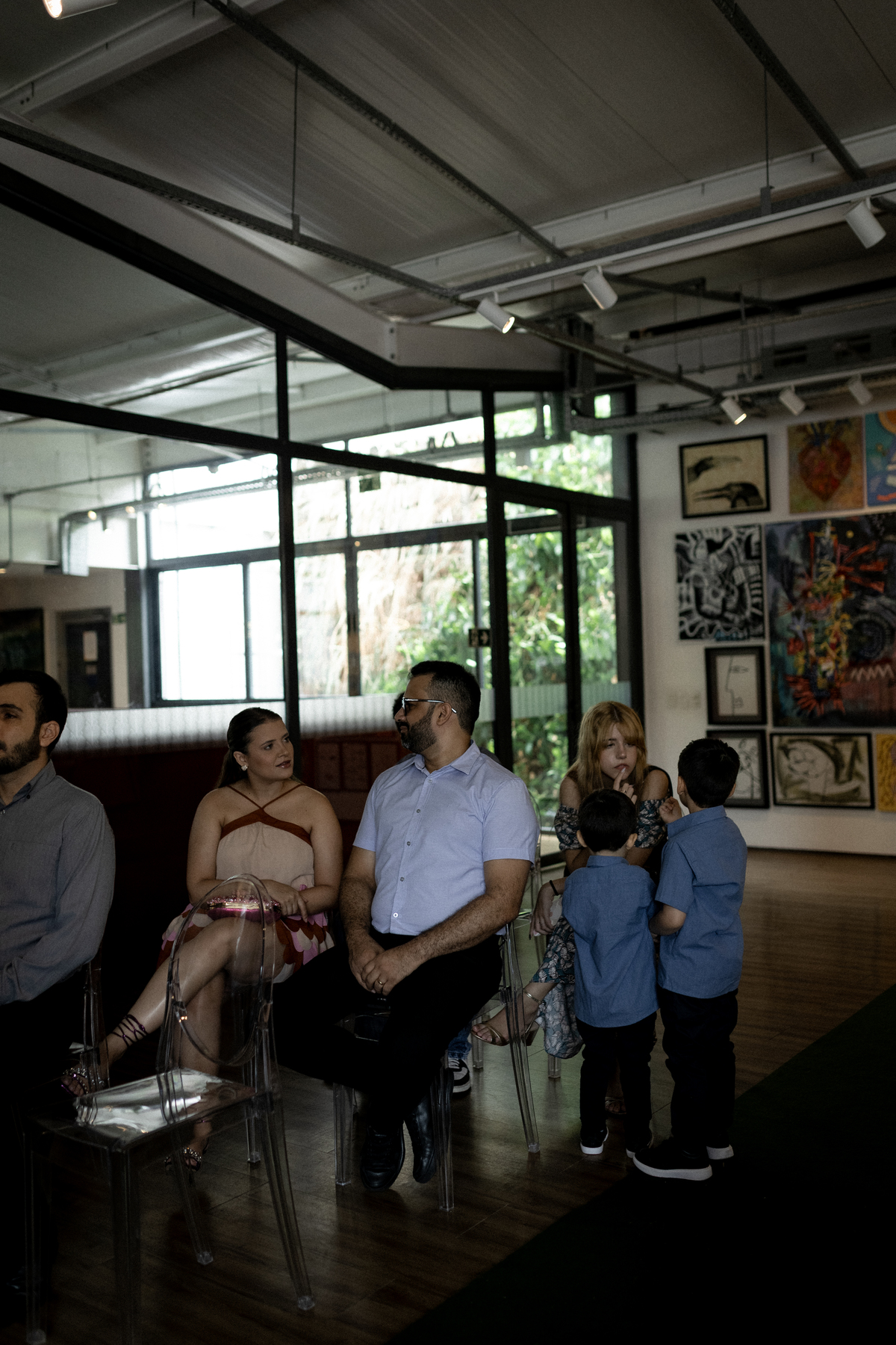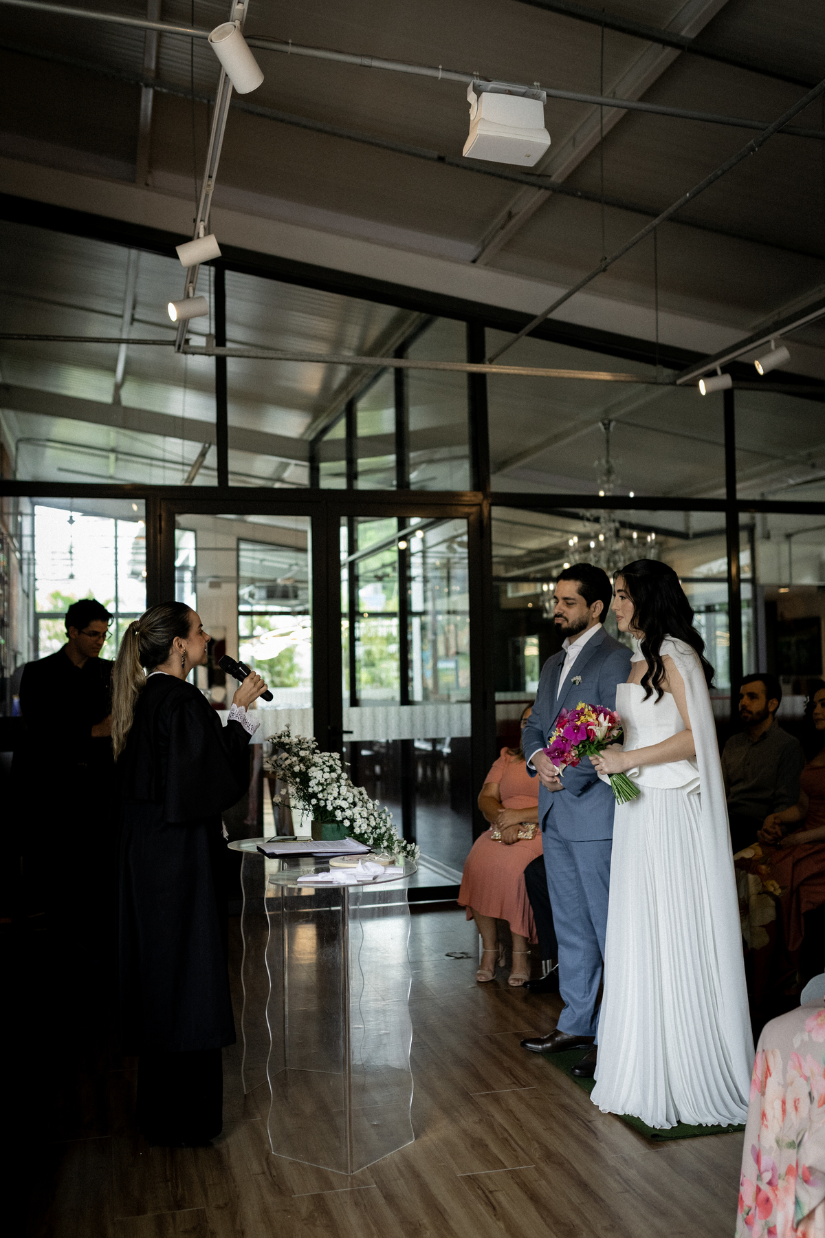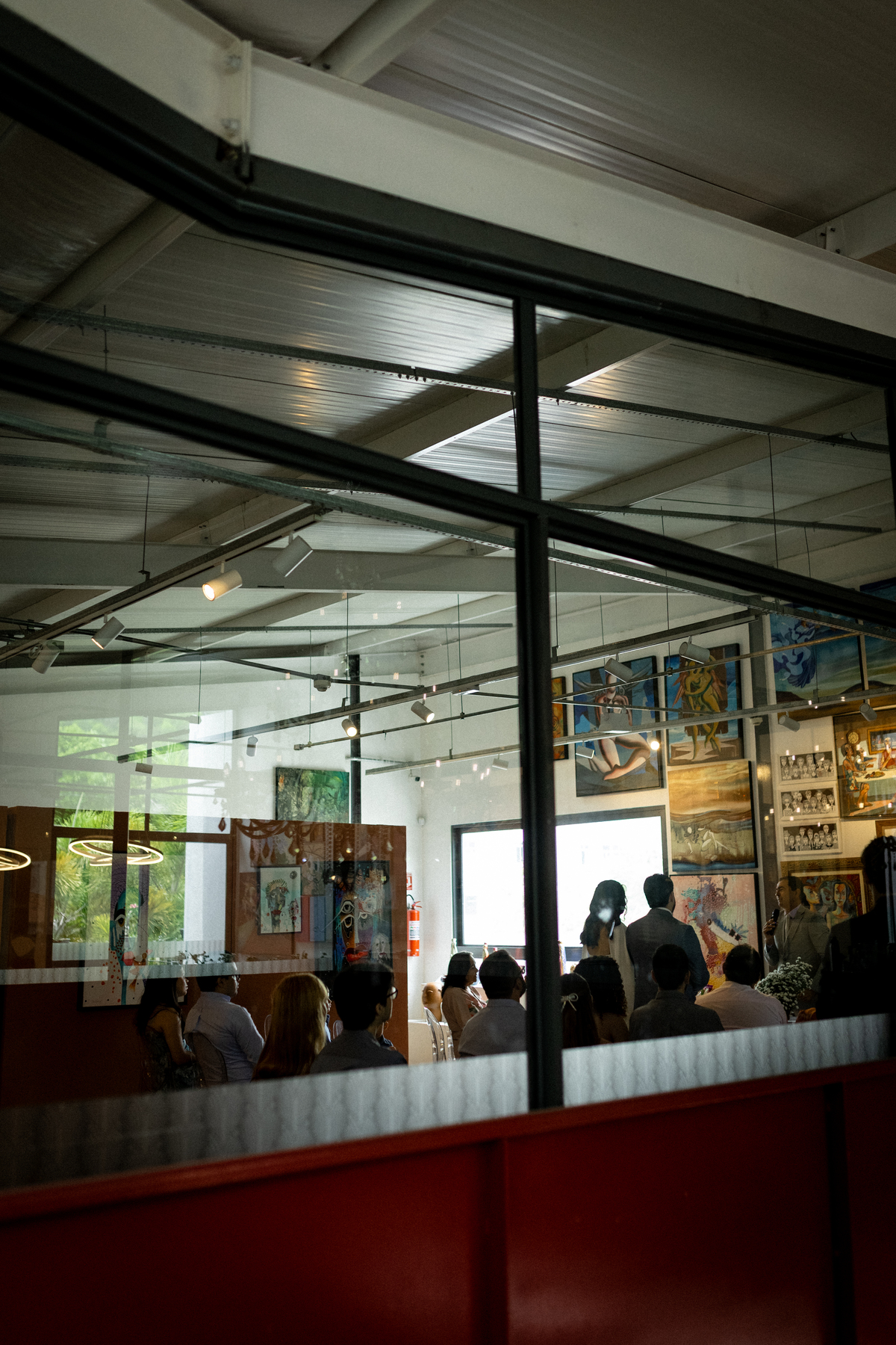 Na Galeria Thomé Bistrô, a Julia e o Juliano escolheram viver o dia cercado por apenas 15 pessoas. Quinze nomes que realmente fazem parte da história. Quinze olhares atentos. Quinze abraços que carregam memória.
